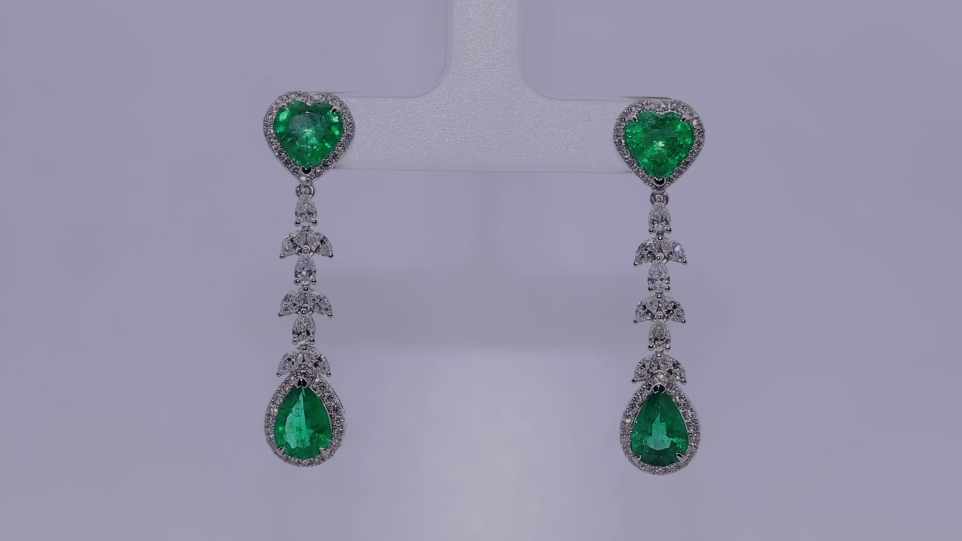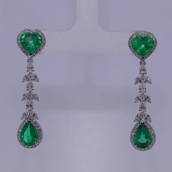 Luxurious Emerald Heart Dangler Earrings with Diamonds in 18k Gold