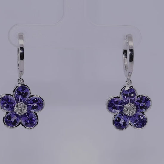 Floral Tanzanite & Diamond Hoops in 18k Gold