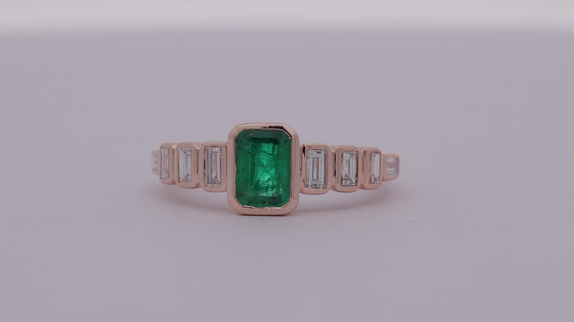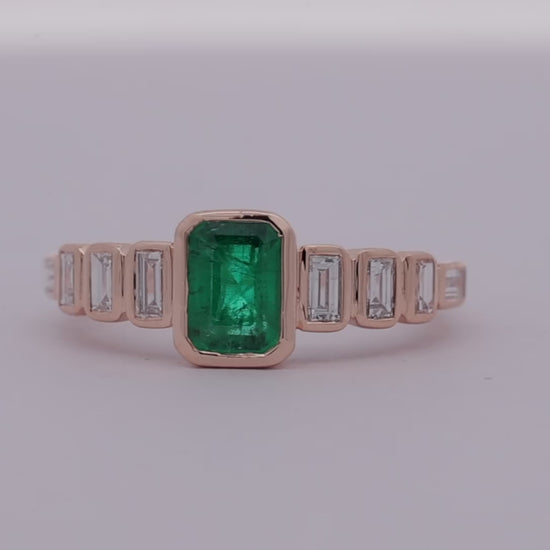 Solitaire Emerald Octagon & Diamond Ring in 18k Gold