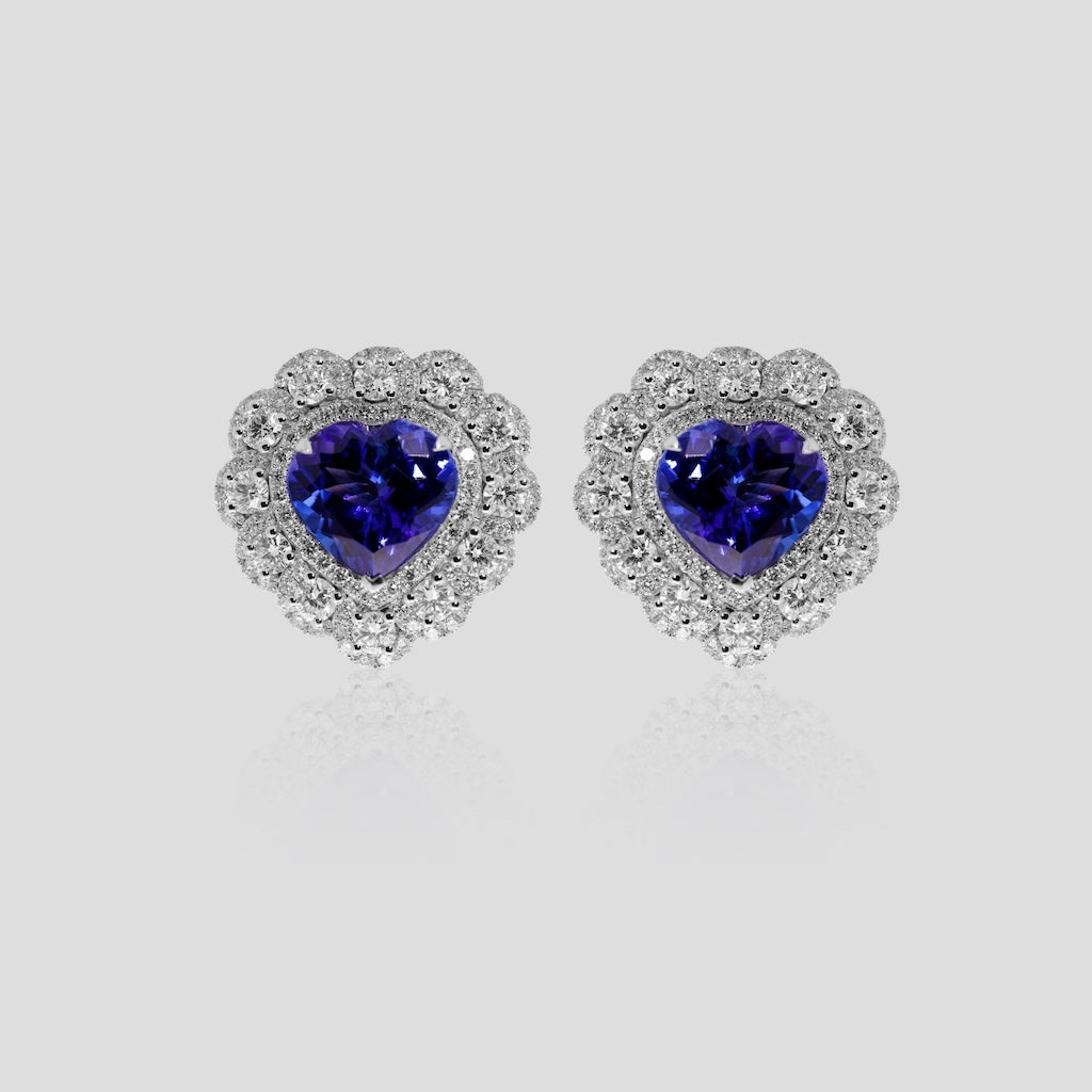 Titanic Tanzanite Heart & Diamond Stud Earrings in 18k Gold